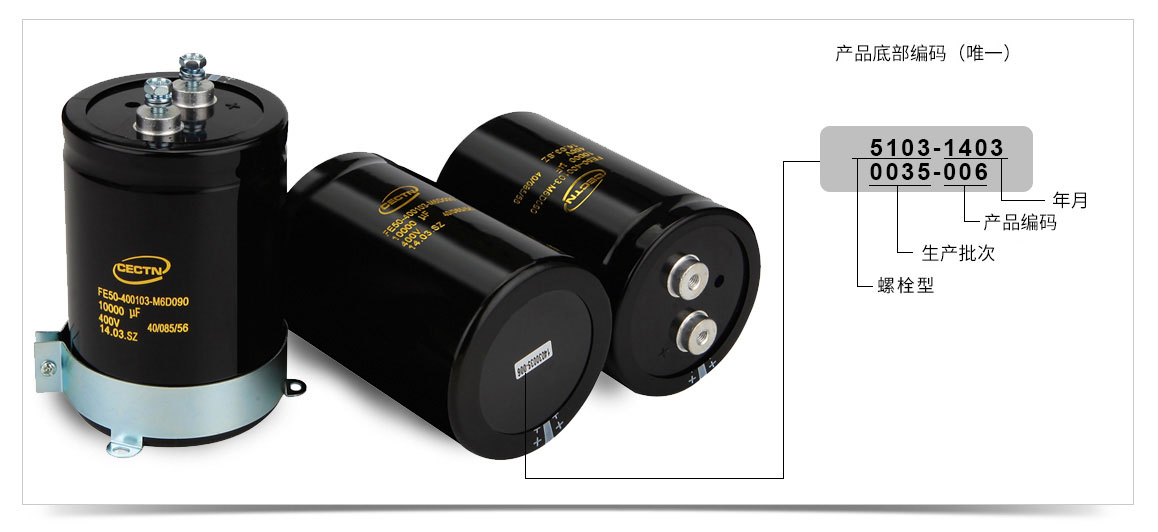 ? ? ? ? CECTN電解電容廠家所生產(chǎn)的么每一只螺栓型電解電容器都會賦予一個唯一的編碼,此編碼可用于追溯數(shù)據(jù),在螺栓型電解電容出廠后任可查詢該產(chǎn)品的所有生產(chǎn)記錄以及測試數(shù)據(jù)等信息。